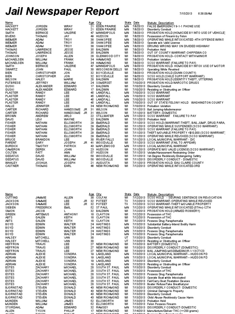St Croix County Jail Booking Report Pdf Probation Driving Under The Influence